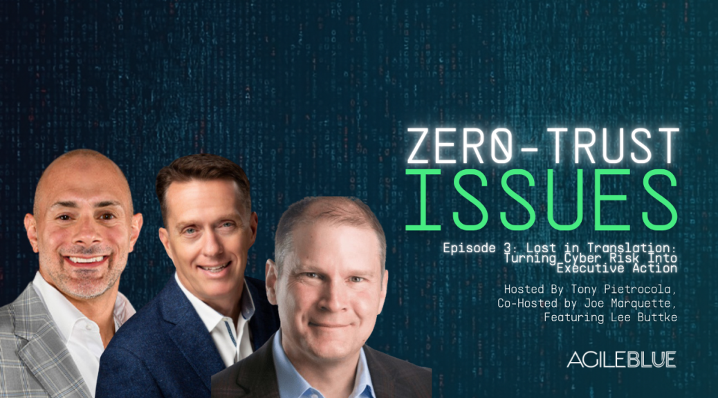 Cybersecurity doesn’t fail because of weak tools. It fails because of weak translation. When executives hear acronyms instead of impact, critical decisions stall. In this episode of Zero Trust Issues, host Tony Pietrocola, President and Co-founder of AgileBlue, and co-host Joe Marquette, AgileBlue CEO and Co-founder, sit down with seasoned CISO Lee Buttke to unpack …